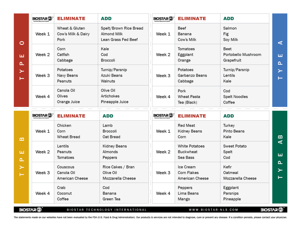 Type O’s benefit tremendously from brisk regular exercise that taxes the cardiovascular and muscular skeletal system. But the benefit derived surpasses the goal of physical fitness. Type O also derives the benefit of a well timed chemical release system. The act of physical exercise releases a swarm of neurotransmitter activity that acts as a tonic for the entire system. The Type O who exercises regularly also has a better emotional response. You are more emotionally balanced as a result of well regulated, efficient chemical transport system. More than any other blood type, O’s rely on physical exercise to maintain physical health and emotional balance. Dr. D’Adamo suggests that Type O’s engage in regular physical activity three to four times per week. For best results, engage in aerobic activity for thirty to forty five minutes at least four times per week. If you are easily bored, choose two or three different exercises and vary your routine.